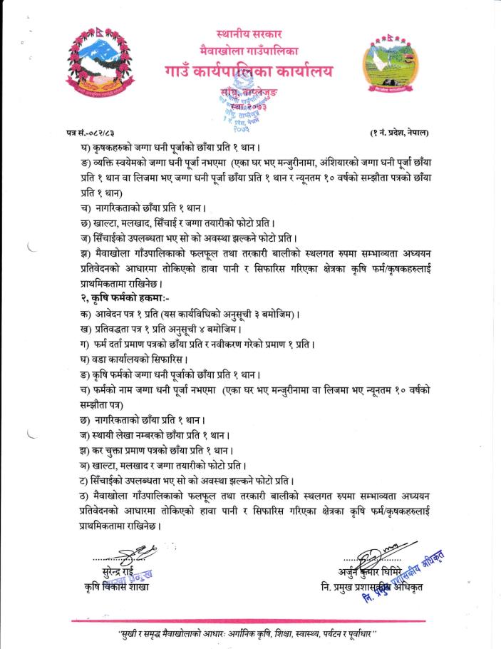 एक घर एक फलफूल बगैँचा विकास कार्यक्रम प्रस्ताव आवह्नान सम्बन्धी सूचना !