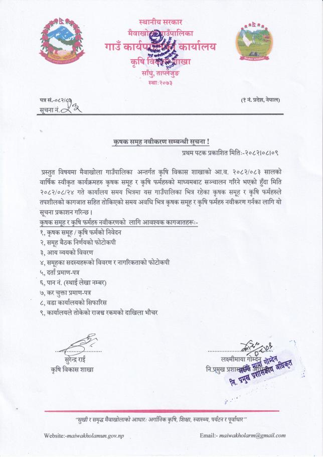 कृषक समूह नवीकरण सम्बन्धी सूचना !