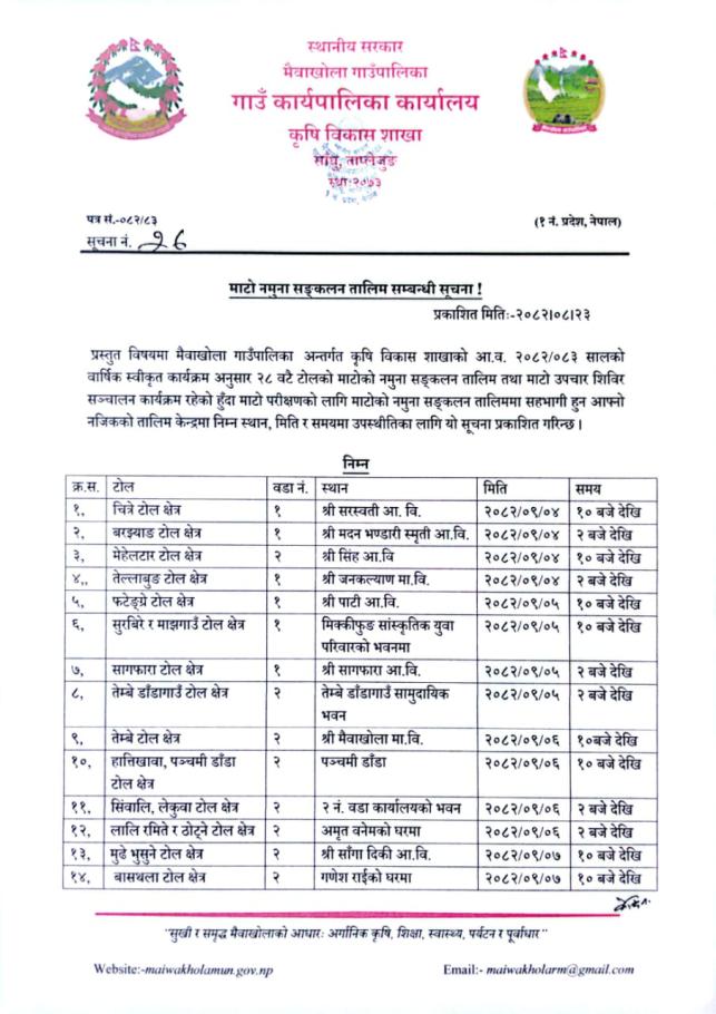 माटो नमुना सङ्कलन तालिम सम्बन्धी सूचना !