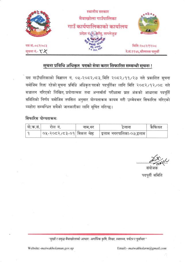 सूचना प्रविधि अधिकृत पदको सेवा करार सिफारिस सम्बन्धी सूचना !